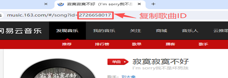 (网易)https://music.163.com/#/song?id=2100666406  要数字ID(红色部分)